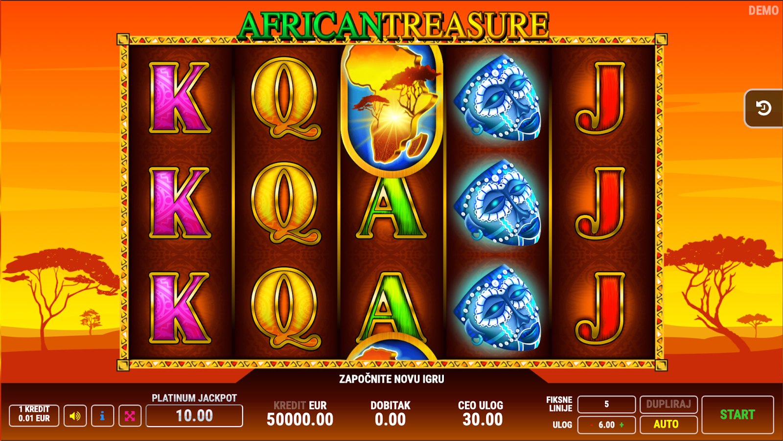 For players who want to test the game without any financial risk, the African Treasure demo version is a perfect option. Available directly in the browser without downloads or registration, the demo allows players to try all features and learn the game mechanics before playing for real money.