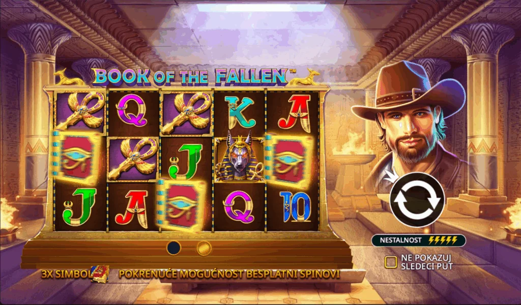 Book of Fallen is a slot that takes players deep into the mystical world of ancient Egypt, rich in symbols, secrets, and legends that have fascinated explorers and adventure lovers for centuries. The game belongs to the popular “book” genre, known for its expanding symbol mechanics and free spins, but it also introduces unique additions that set it apart from many similar titles.