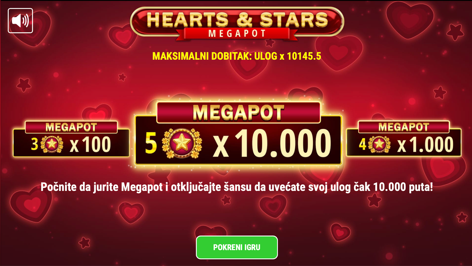 Unlike modern slots packed with dozens of features, Hearts & Stars focuses on simplicity. Its primary bonus mechanic is the Megapot system, capable of awarding up to 10,000x your bet, regardless of paylines.